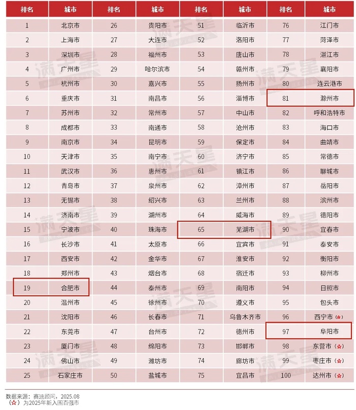 日前,工信部中国电子信息产业发展研究院直属机构赛迪顾问,发布2025数字百强市和数字经济百强市名单,安徽分别有4座城市上榜。