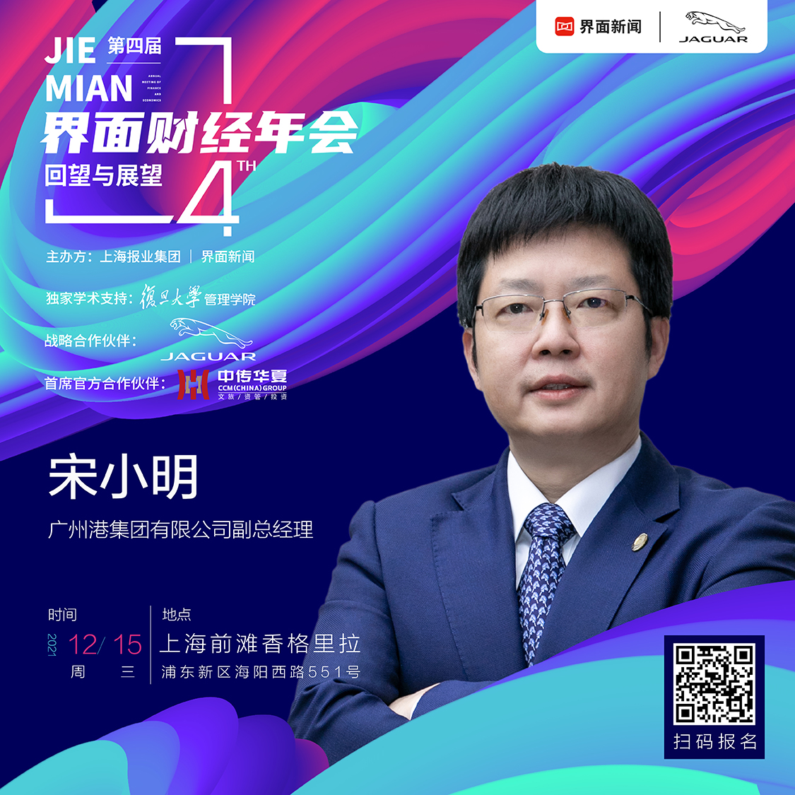 广州港集团有限公司副总经理宋小明确认出席将于12月15日在上海前滩香格里拉(浦东新区海阳西路551号)举办的第四届【界面财经年会】并发表主旨演讲。